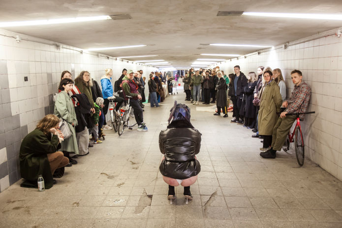 Poolteist tundi laulab ja liigub koor Balti jaama tunnelis. Kõnni mööda või peatu ja jää. Performance põhineb Aino Kallase “Lasnamäe valge laev” (1913) ainetel.